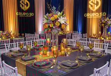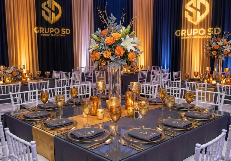 Mesas, sillas, cubertería y mantelería adaptadas a las necesidades de tu evento, ofreciendo montaje elegante, funcional y acorde al estilo deseado.