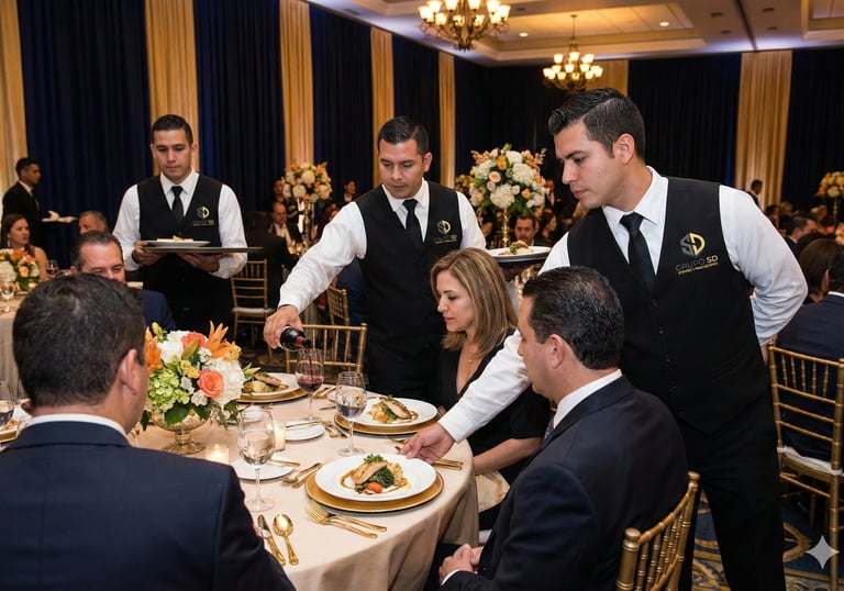 Personal capacitado en atención, servicio y operación para garantizar una experiencia impecable. Incluye meseros, coordinadores, supervisores y staff especializado según los requerimientos de tu evento.